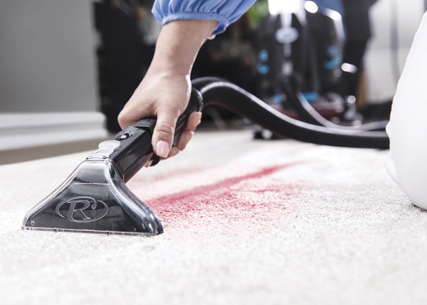 La calidad profesional de un sistema de lavado de alfombras en tu hogar. Elimina fácilmente las manchas que no se pueden aspirar, tales como manchas de grasa, aceite, mascotas o caída de líquidos.